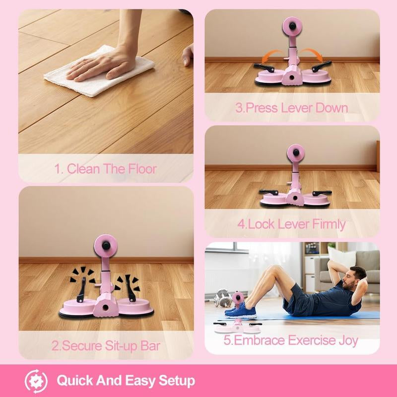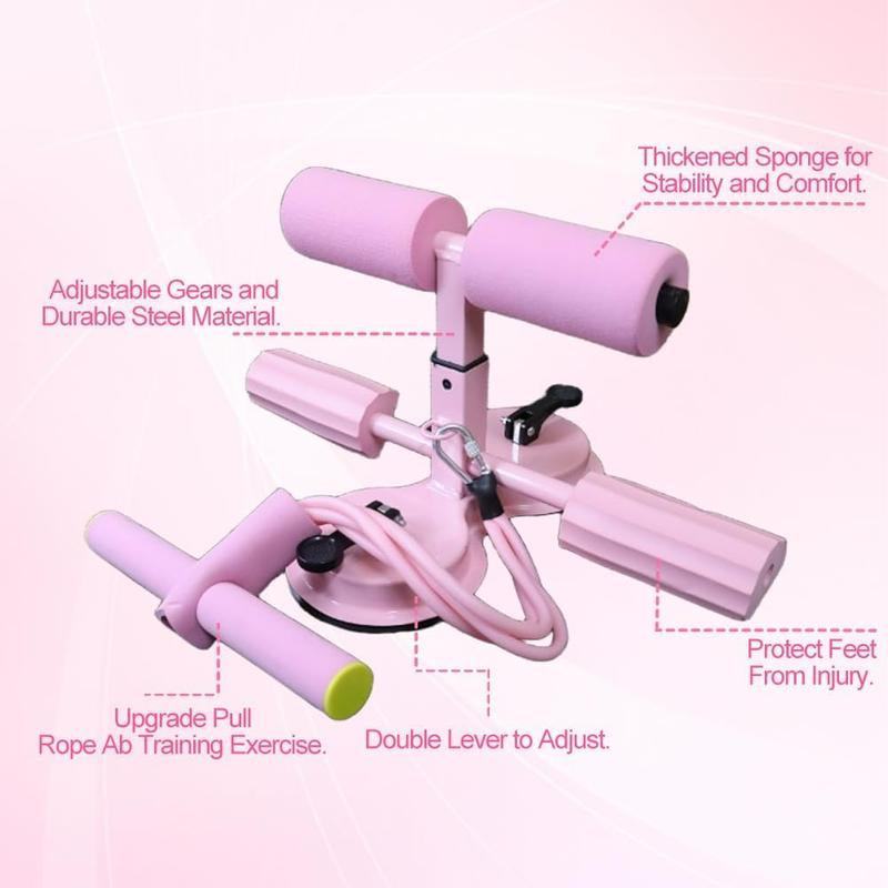 Elevate your core workout with this portable adjustable sit-up equipment. It features double suction cups for secure stability. The device offers 3-level height adjustment, ensuring a perfect fit for every user. Ideal for home gyms, it's a versatile core trainer for abs workouts. The pink design adds a touch of style to your fitness routine. Perfect for enhancing core strength at home.