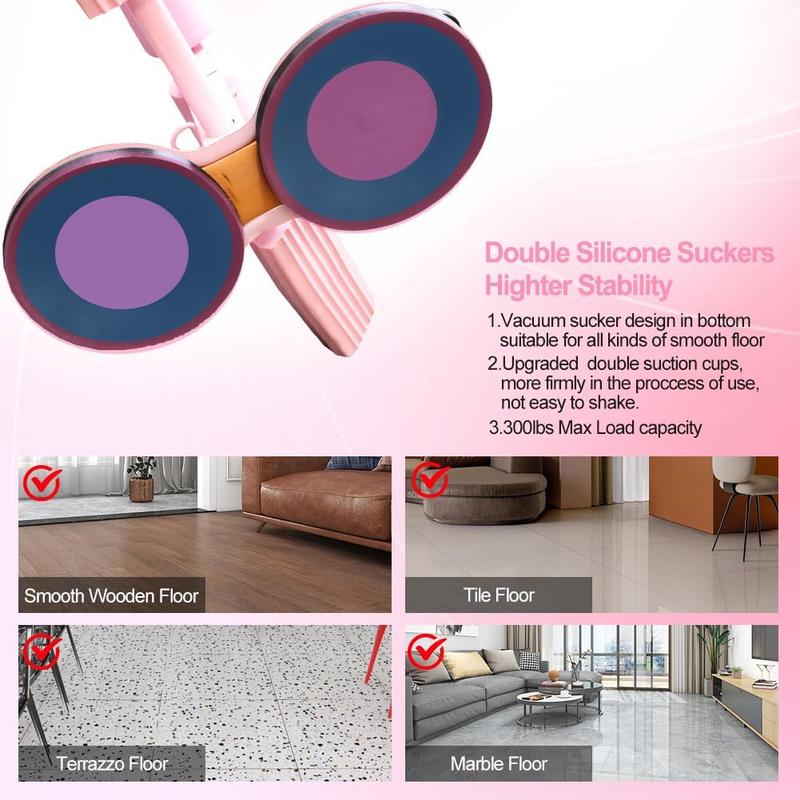 Ab Training Auxiliary Device with Double Suction Cups 3-Level Height Adjustment Portable Adjustable Sit up Equipment for Home Gym Multi-Functional Core Trainer for Abs Workout Pink Abdominal Exercise Board Abdominal Roller Wheel
